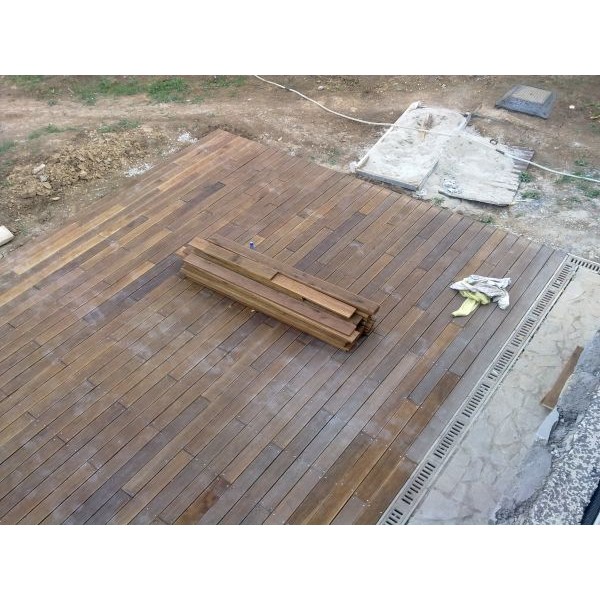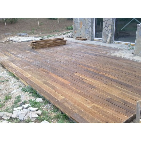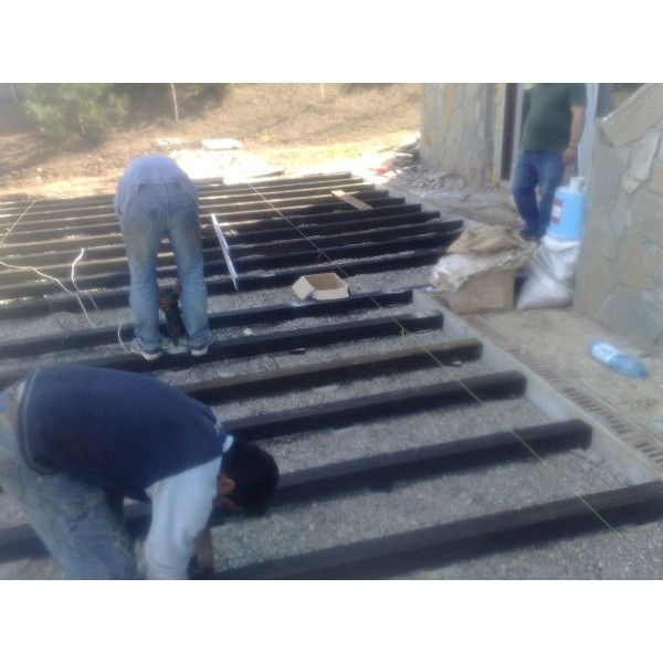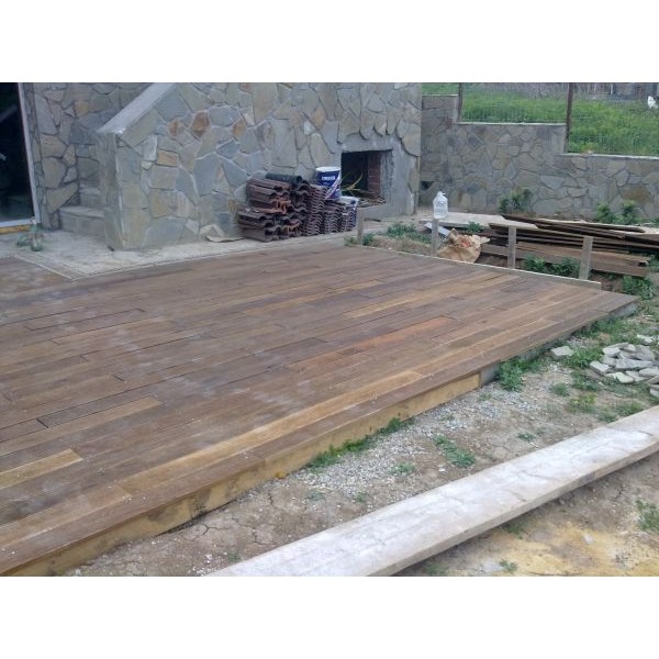 montaj profesionist de decking pe structura de lemn si pe piloni de beton